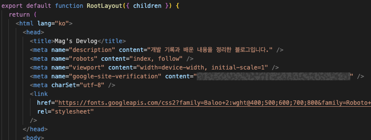 <meta name="description" content="개발 기록과 배운 내용을 정리한 블로그입니다." />
