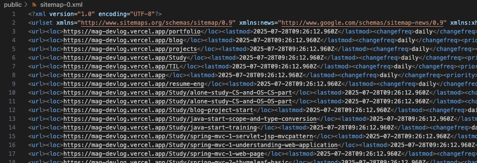 페이지 추가 시 SEO 자동 반영되게 설정했다.